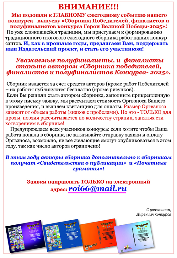 ждем Ваши заявки и работы на адрес: